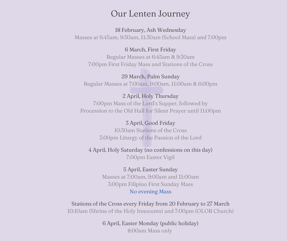 Reconciliation times are as follows:Mondays: 7.30pm - 8pm and Saturdays 10am